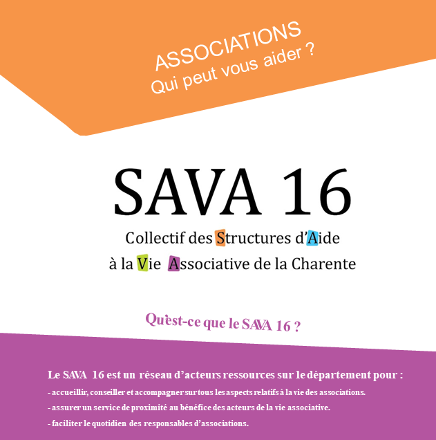 Le SAVA16 est un collectif créé en 2008. Il a vocation à rassembler en Charente les structures d’aide à la vie associative locales et départementales portées par des associations, des collectivités territoriales et des services de l’État. Ce réseau propose notamment aux bénévoles des associations de Charente, ainsi qu’à toute personne souhaitant s’impliquer dans la vie associative (adhérents, bénévoles occasionnels…), des moyens et des outils pour se former et ainsi mieux appréhender leur rôle.